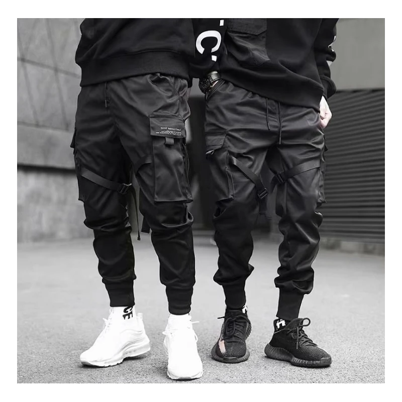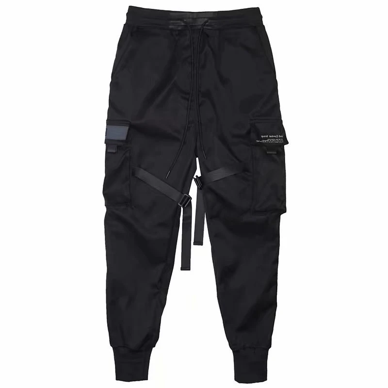 Ribbons Harem Joggers Men Cargo Pants Streetwear Hip Hop Casual Pockets Cotton Track Pants