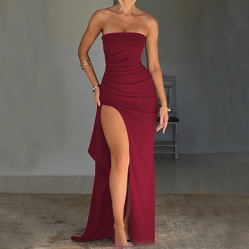 New Polka Dot Print Suspender Dress Summer Sexy Split Long Dresses For Womens Clothing