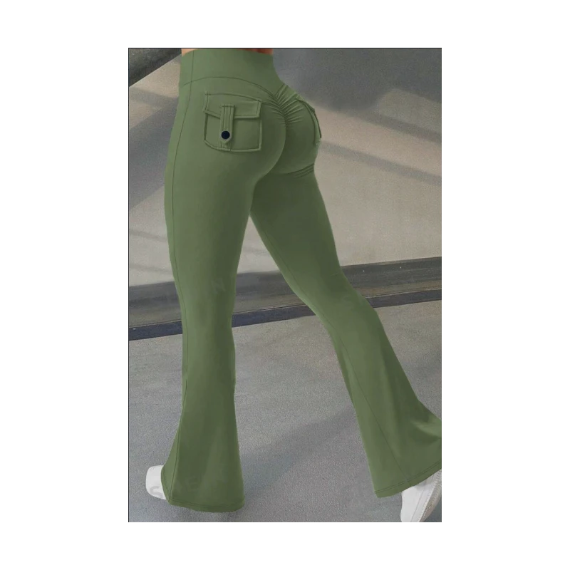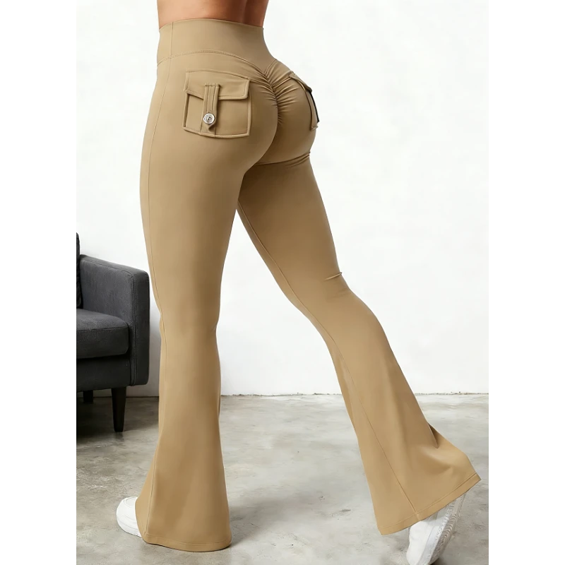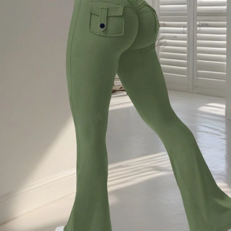 Yoga Fitness Flared Pants With Pockets Ins Fashion Slim High Waist Sports Trousers Scrunch Butt Booty Workout Lifting Leggings