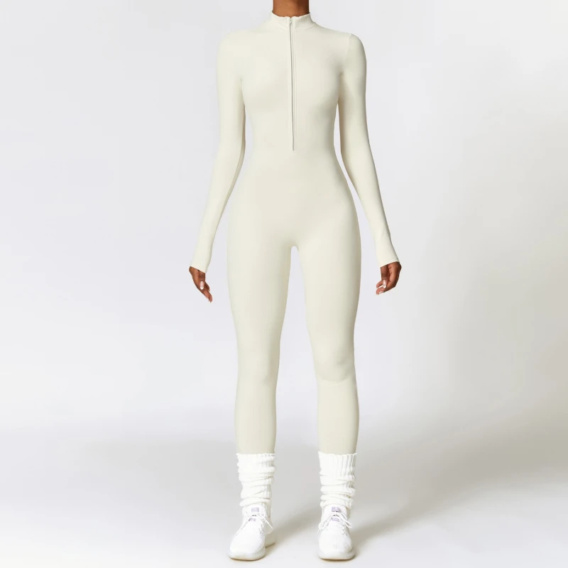 Warm Zipper Long-sleeved Jumpsuit Yoga Fitness Sports Pants Breathable Bodysuit Women's Clothing