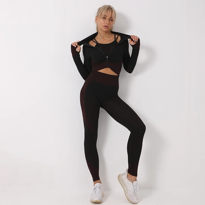 Seamless Yoga Sport Set Fitness Women Running Leggings Short Sleeve Tops