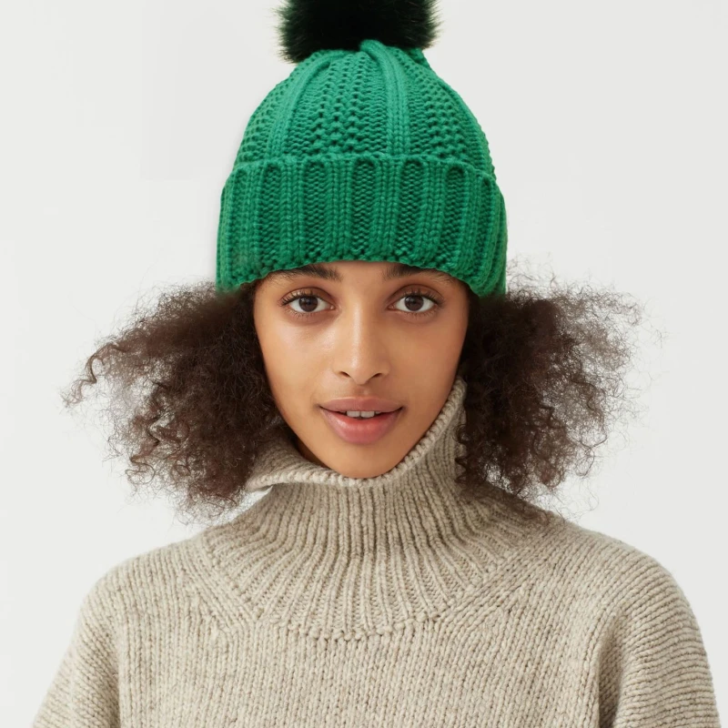 Winter Knitted Hats Fashion Stretchy Lined Skull Hats For Women Faux Fur Pom Pom Hat Keep Warming Beanie Hat